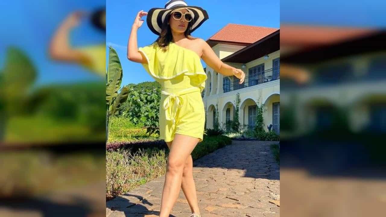 आता हीनानं मस्त पिवळ्या जंपसुटमध्ये फोटोशूट केलं आहे. या ट्रेंडी ड्रेससोबत हीनानं छान मॅचिंग गॉगल कॅरी केला आहे, तर सोबतच काळ्या रंगाची कॅपसुद्धा तिनं उत्तमरित्या कॅरी केली आहे. पिवळा हा रंग उन्हाळ्यात परिधान करण्यासाठी योग्य असतो त्यामुळे हीनाचा हा लूक तुम्ही या उन्हाळ्यात ट्राय करू शकता.