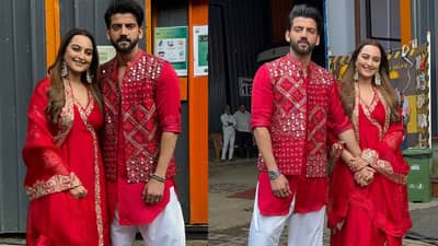 सोनाक्षी आणि झहीर हे ट्रेडिशनल लूकमध्ये दिसत आहेत. दोघांनीही लाल रंगाचे सुंदर कपडे घातले होते. पापाराझींना फोटोसाठी पोझ देताना हे दिसले.