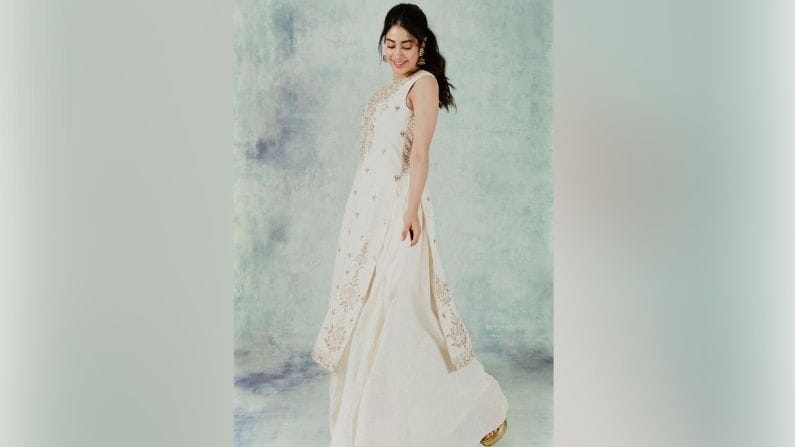 - पांढऱ्या रंगाच्या या कुर्त्यात जान्हवी कपूर खूपच सुंदर दिसत आहे. उन्हाळ्यासाठी तुम्हालाही हा ड्रेस नक्कीच आवडेल.