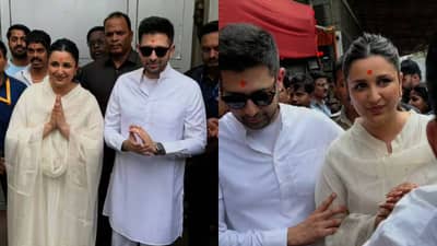 आता सिद्धिविनायक मंदिरातील राघव चड्ढा आणि राघव चड्ढा यांचे फोटो तूफान व्हायरल होताना दिसत आहेत. यावेळी परिणीती खास लूकमध्ये दिसली.