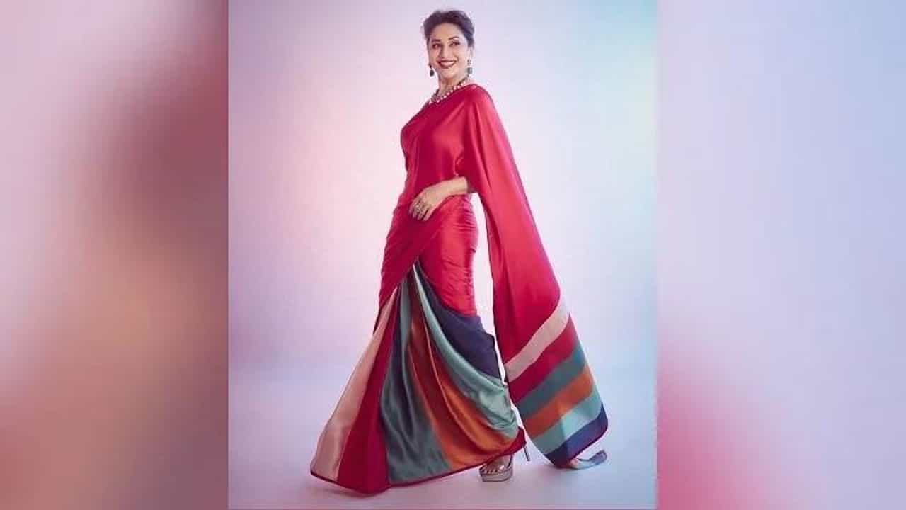 माधुरीची ही साडी तुम्हाला आवडली असेल तर क्षितिज जलोरीच्या या ब्रुकलिन रेड सा़डीसाठी तुम्हाला 24, 800 रुपये खर्च करावे लागतील.