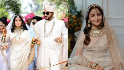शरयूने लग्नाच्या विधीदरम्यान पारंपरिक नऊवारी साडी नेसली होती. मात्र त्यानंतर तिने बॉलिवूड अभिनेत्री आलिया भट्टच्या लग्नातील लूक हुबेहूब कॉपी केल्याचं पहायला मिळालं. आलियाने तिच्या लग्नात पांढऱ्या रंगाची साडी नेसली होती.