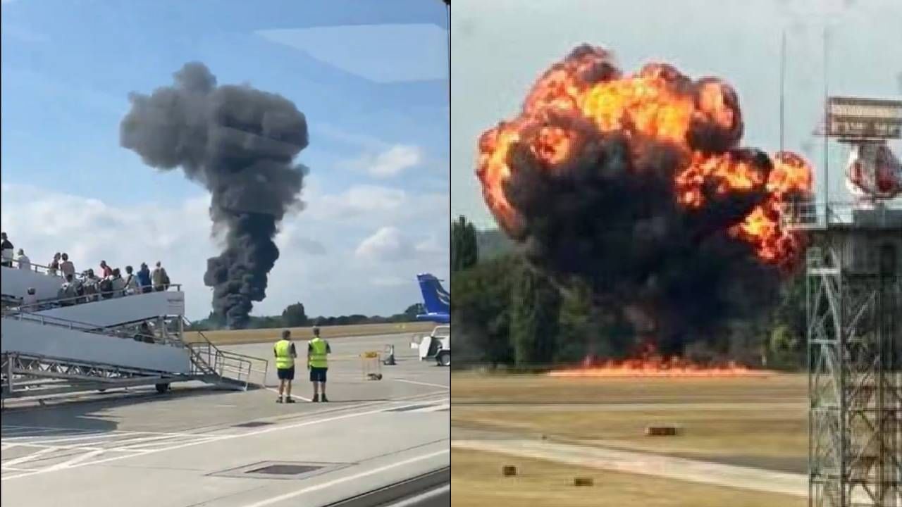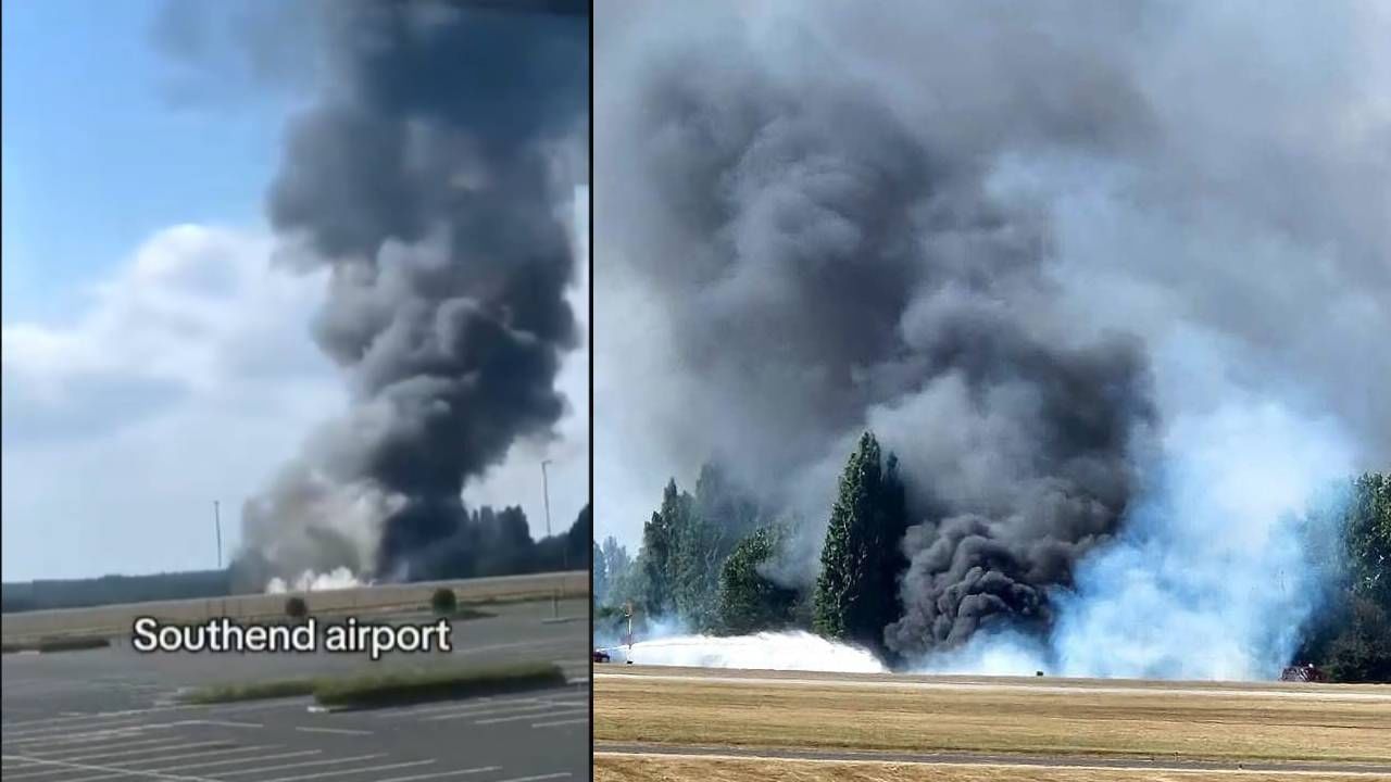 - रविवारी एसेक्समधील लंडन साऊथएंड विमानतळावर एक विमान कोसळलं. भारतात अहमदाबाद एअरपोर्टवर ज्या प्रकारे एअर इंडियाचं विमान कोसळलं होतं, त्याचप्रकारे हे विमानसुद्धा टेक-ऑफनंतर काही क्षणांतच कोसळलं आणि मोठा स्फोट झाला. त्यानंतर मोठा आगीचा गोळा निर्माण झाला.