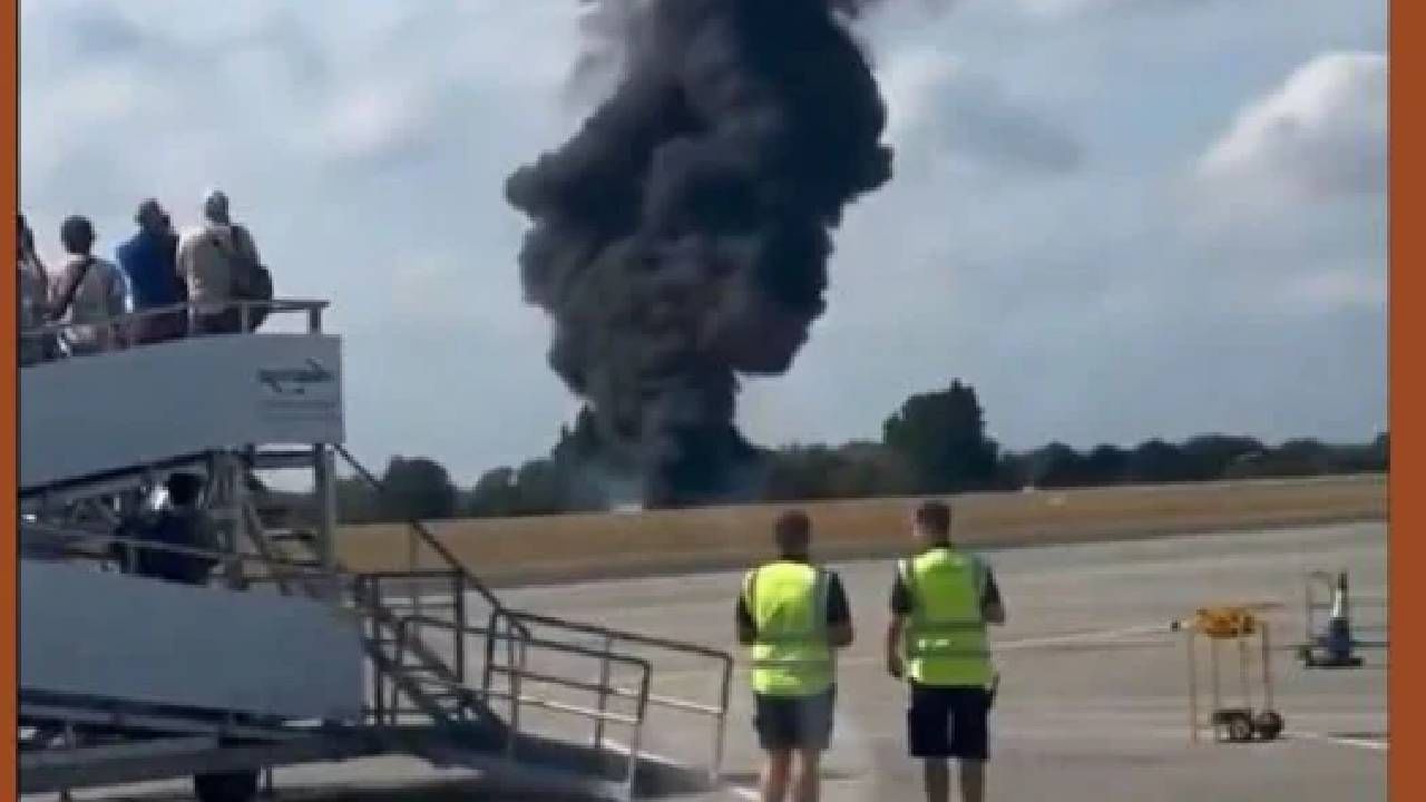 - विमानतळाच्या वेबसाइटवरील माहितीनुसार, पाच आंतरराष्ट्रीय उड्डाणे रद्द करण्यात आली आहेत. सोशल मीडियावर या घटनेचे फोटो आणि व्हिडीओ व्हायरल झाले असून त्यात विमानतळावर मोठा आगीचा गोळा आणि धुराचे लोट दिसत आहेत. या अपघाताचं कारण अद्याप स्पष्ट झालेलं नाही.