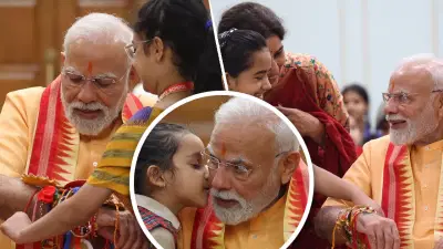 लोक कल्याण मार्गावरील पंतप्रधान निवासस्थानी मोठ्या संख्येने उपस्थित शालेय विद्यार्थिनींनी पंतप्रधान मोदींना राखी बांधली. यावेळी पंतप्रधान मोदींनी या विद्यार्थिनींशी संवाद साधला आणि हास्य-विनोदही केला.