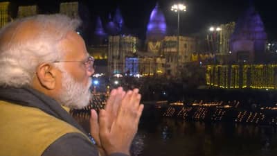 पंतप्रधान मोदी वाराणसीमध्ये विवेकानंद क्रूझवर सवार झाले होते. इथे आज शिव दीपोत्सव साजरा केला जात आहे. आरतीसोबतच लेझर शो देखील झाला. चारही बाजूला दिव्यांचा प्रकाश पाहायला मिळत होता.
