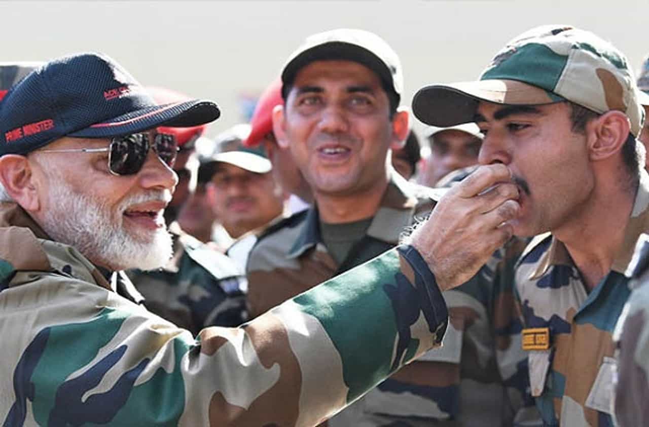PHOTO : मोदींची जवानांसोबत दिवाळी, मिठाई भरवत साजरा केला सण