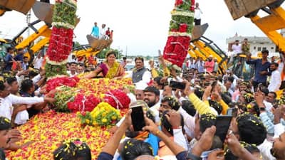 पंकजा मुंडे यांचं ठिकठिकाणी भव्य स्वागत होत आहे. गंगाखेडमध्ये आमदार रत्नाकर गुट्टे आणि मुंडे समर्थकांनी फुलांची उधळण करत पंकजा यांचं स्वागत केलं.