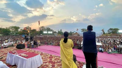 भाजपच्या उमेदवार शशिकला जोळ्ळे यांच्या प्रचारार्थ देवेंद्र फडणवीस यांनी निप्पाणी आणि बेळगावमध्ये सभा घेतली. या सभेचे फोटो त्यांनी सोशल मीडियावर शेअर केले आहेत.