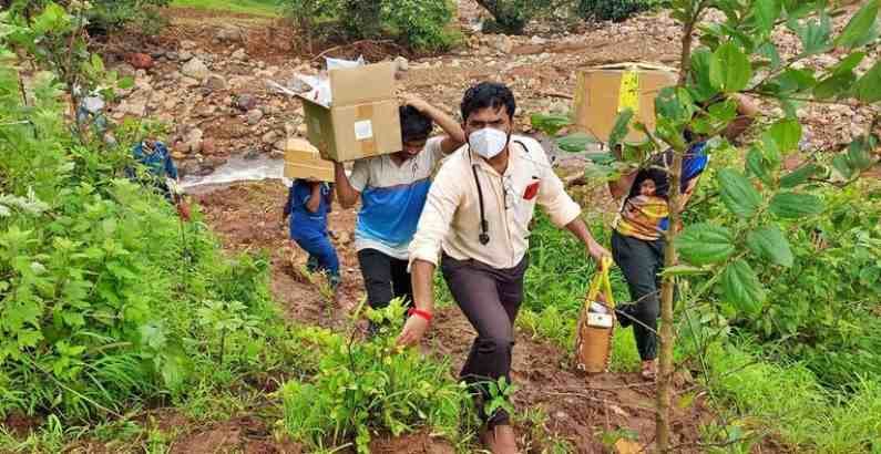 - काही गावात रस्ता वाहून गेल्यामुळे औषधांचे साहित्य डोक्यावर घेत डॉक्टरांनी बाधित लोकांची सेवा केली.