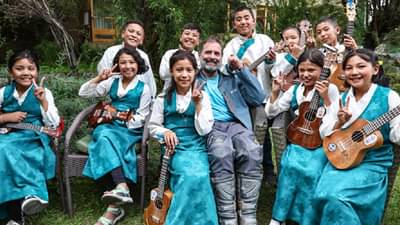 शालेय विद्यार्थ्यांशीही राहुल गांधी यांनी संवाद साधला. यावेळी त्यांनी गाण्याचा आनंद घेतला.