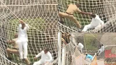 मंत्रालयात हायव्होलटेज ड्रामा, सत्ताधारी पक्षातील आमदार-खासदारांच्या मंत्रालयाच्या संरक्षक जाळीवर उड्या, पाहा फोटो