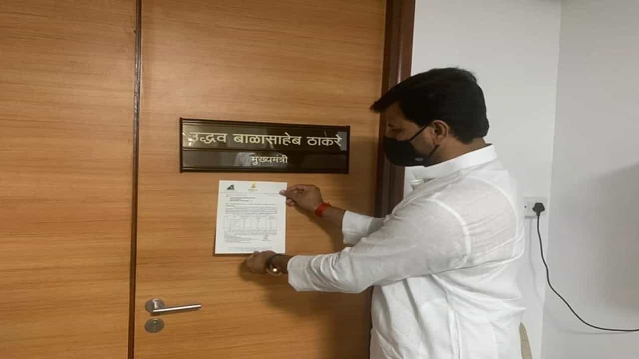 युवा स्वाभिमान पक्षाचे नेते आणि आमदार रवी राणा यांनी मुख्यमंत्री उद्धव ठाकरे यांच्या केबिनला आपलं निवेदन चिटकवलं.