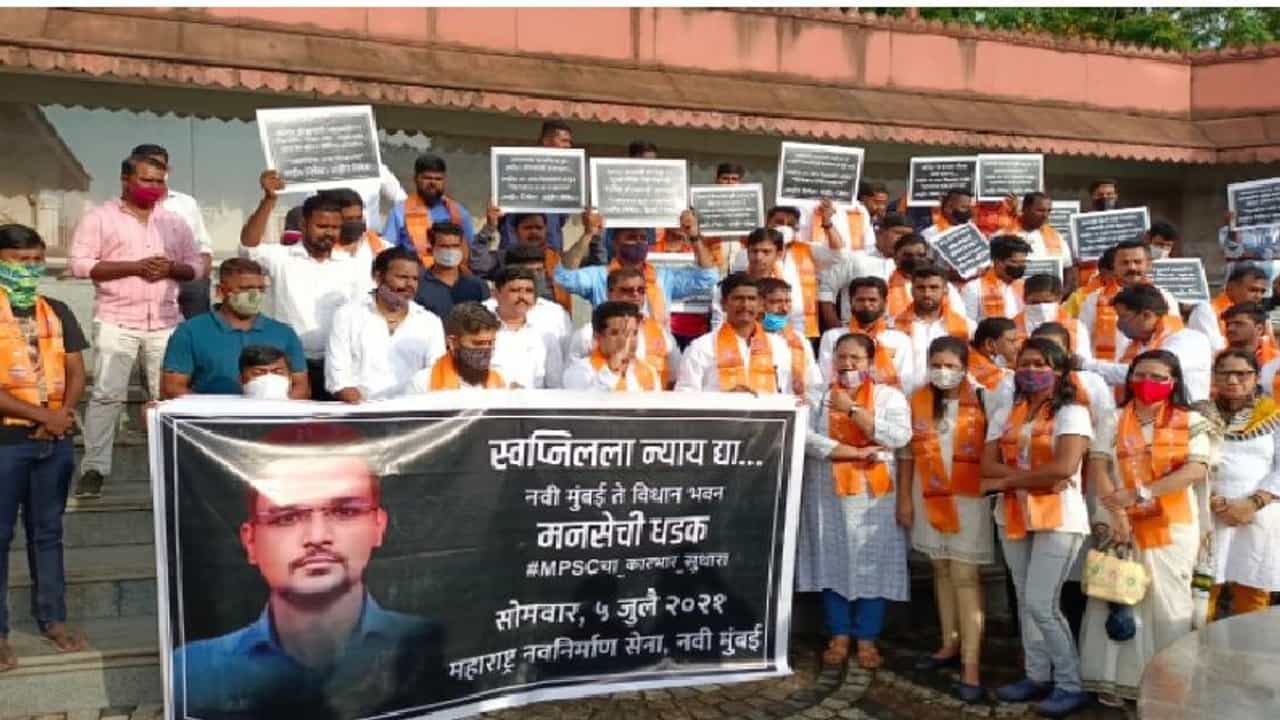स्वप्नील लोणकरच्या आत्महत्येनंतर नवी मुंबईत महाराष्ट्र नवनिर्माण सेनाही आक्रमक झाली. वाशीच्या शिवाजी चौकातून विधान भवनावर पायी निघालेला मोर्चा अडवत पोलिसांनी आंदोलकांना ताब्यात घेतले होते.