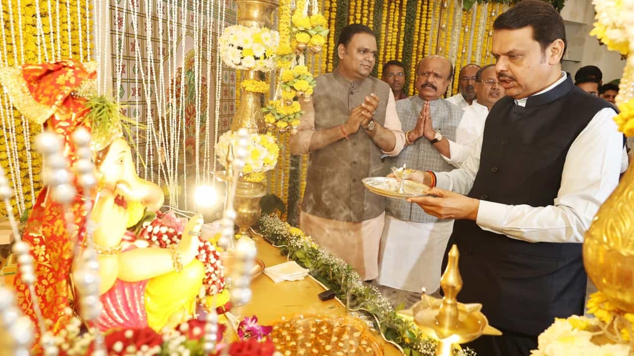 राज्याचे उपमुख्यमंत्री देवेंद्र फडणवीस यांच्या घरीही गणरायाची स्थापना करण्यात आली आहे. देवेंद्र फडणवीस यांनी मनोभावे बाप्पाची आरती केली. बाप्पाच्या दर्शनासाठी अनेक नेत्यांनी देवेंद्र फडणवीस यांच्या घरी हजेरी लावली.