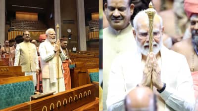 पंतप्रधान नरेंद्र मोदी यावेळी सेंगोलसमोर नतमस्तक झाले.