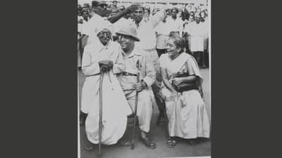 औरंगाबादमध्ये महाविद्यालयाचं भूमीपूजन केल्यानंतर तत्कालीन राष्ट्रपती राजेंद्र प्रसाद आणि डॉ. आंबेडकर वेरुळची लेणी पाहताना. (1 सप्टेंबर 1951)