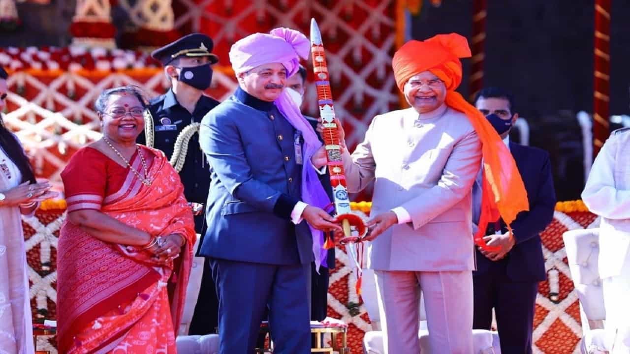 खासदार संभाजी छत्रपती यांनी राष्ट्रपती रामनाथ कोविंद यांना दांडपट्टा, भवानी तलवार, आज्ञापत्राची प्रत आणि शिवकालीन होनची (नाणे) प्रतिकृती भेट दिली.