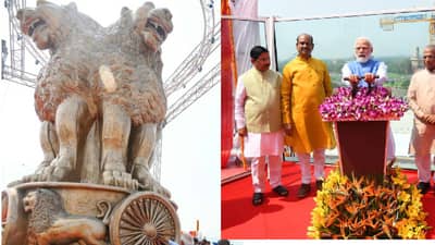 पंतप्रधानांच्या हस्ते तयार करण्यात आलेले राष्ट्रीय बोधचिन्ह कांस्य पासून बनवण्यात आले आहे. व त्याचे एकूण वजन 9500 किलो आहे. आणि त्याची उंची 6.5 मीटर आहे.