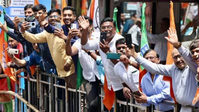 रस्त्याच्या कडेला असलेल्या दुकानांच्या पायऱ्यांवर पंतप्रधान मोदी यांना पाहण्यासाठी ही अशी गर्दी झाली होती.