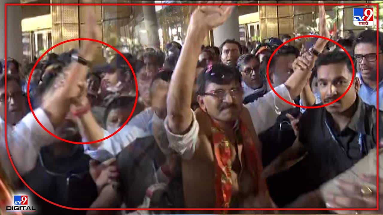 संजय राऊत यांचं मुंबई विमानतळावर गुरुवारी जंगी स्वागत झालं. त्यांच्या स्वागतासाठी ढोल ताशे घेऊन शिवसैनिक विमानतळावर दाखल झाले होते. कार्यकर्त्यांच्या गराड्यात असताना संजय राऊत बाहेर आले. यावेळी तोबा गर्दीतून वाट काढत ते मुंबई विमानतळावरुन बाहेर आले होते. यावेळी एका खास क्षणानं कॅमेऱ्यांचं लक्ष वेधलं.