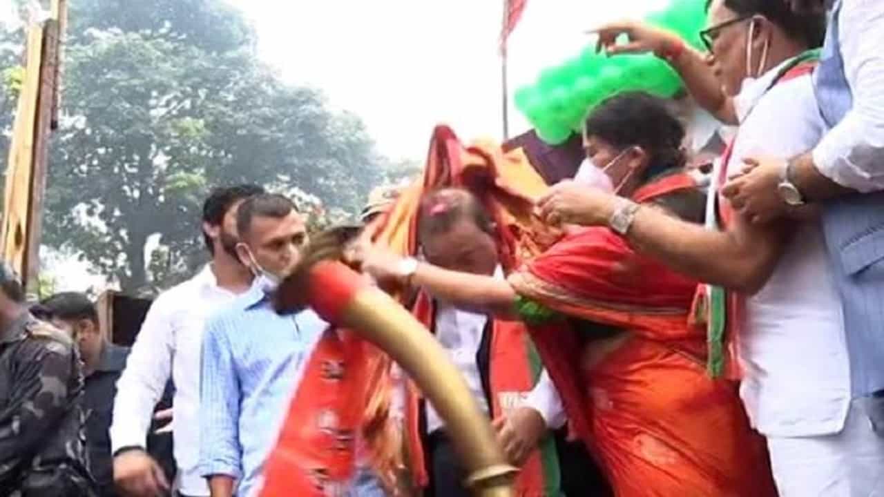 PHOTO : तृप्ती सावंतांकडून सत्कार स्वीकारताच राणेंचा एल्गार, शिवसेनेला मुंबई मनपातून हद्दपार करणार!