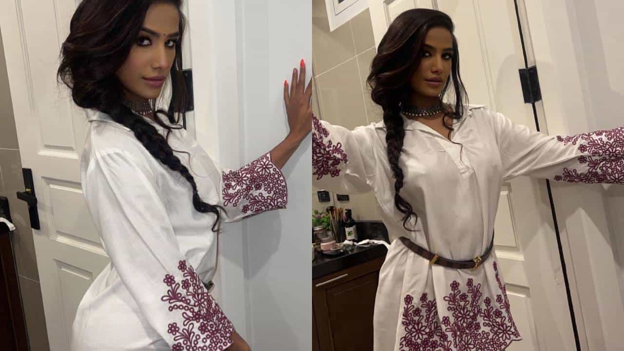 Poonam Pandey Latest Photos : मॉडेल आणि अभिनेत्री पूनम पांडे तिच्या फोटोंनी चाहत्यांची मने जिंकते. नुकतेच पूनमने इंडोवेस्टर्न वन पीस ड्रेसमधील फोटो शेअर केले, जे सोशल मीडियावर व्हायरल होत आहेत.
