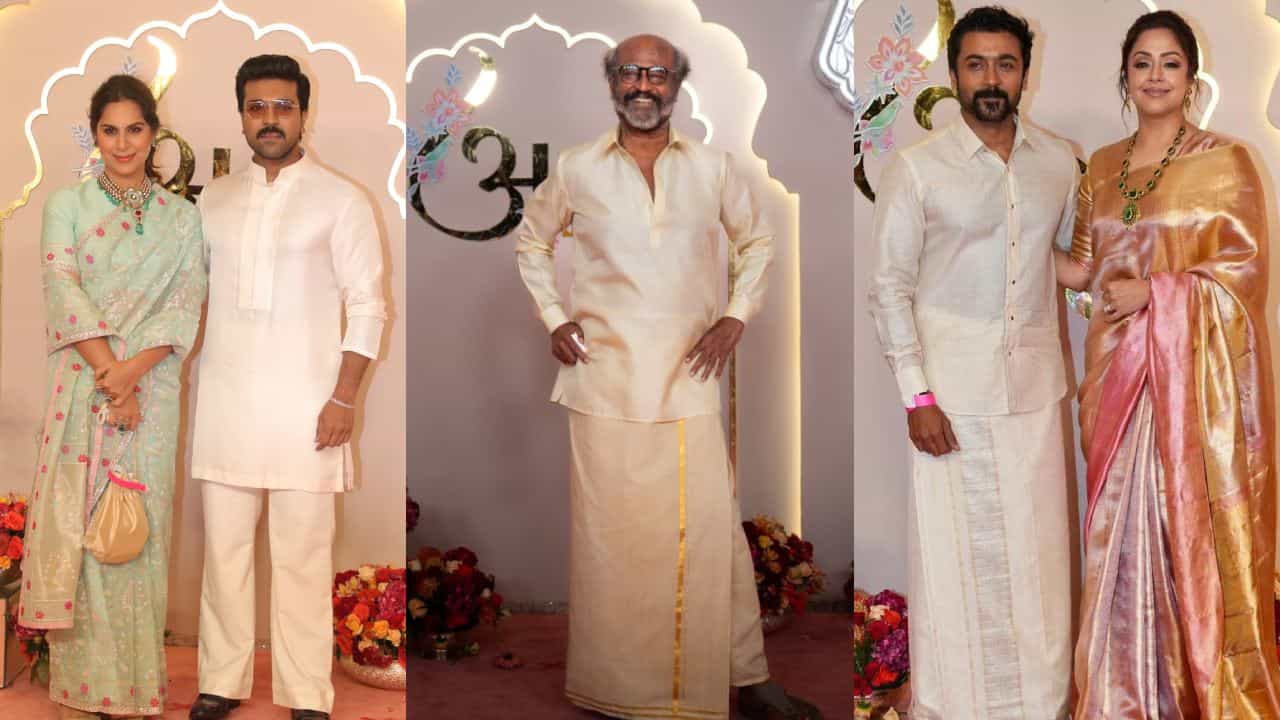 रजनीकांत, रामचरण, राणा डग्गुबती, व्यंकटेश, महेश बाबू, सूर्या आणि त्याची पत्नी ज्योतिका अशा विविध साऊथ सुपरस्टार्सनी अंबानींच्या कार्यक्रमाला लक्षवेधी पोशाखात हजेरी लावली.