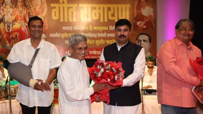 रामनवमीच्या पूर्वसंध्येला ( बुधवारी) , शिवसेना लोकसभा गटनेते खासदार राहुल शेवाळे यांच्या वतीने प्रभादेवीच्या रवींद्र नाट्य मंदिरात आयोजित करण्यात आलेल्या ' गीतरामायण ' या कार्यक्रमाला रसिक श्रोत्यांनी हजेरी लावली.