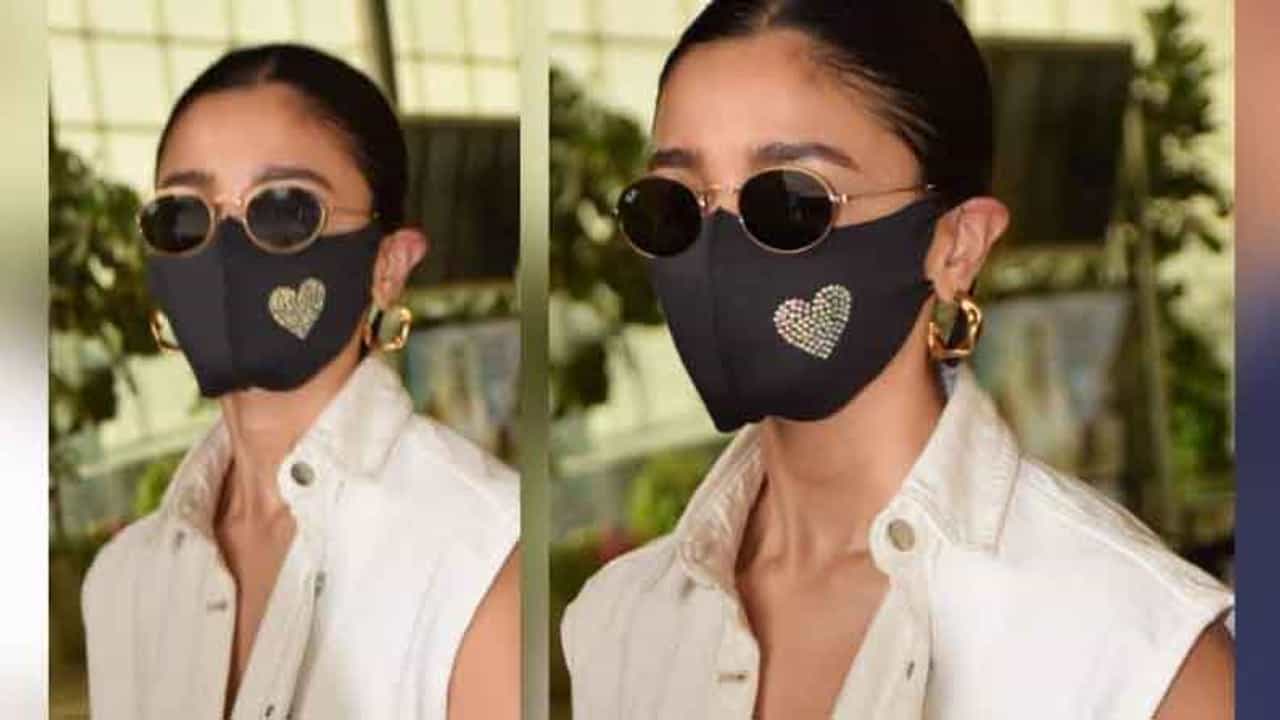 यादरम्यान, आलियाने एक अतिशय स्टायलिश मास्क देखील परिधान केला होता, ज्यावर हृदयाचे डिझाईन कोरलेला होता.