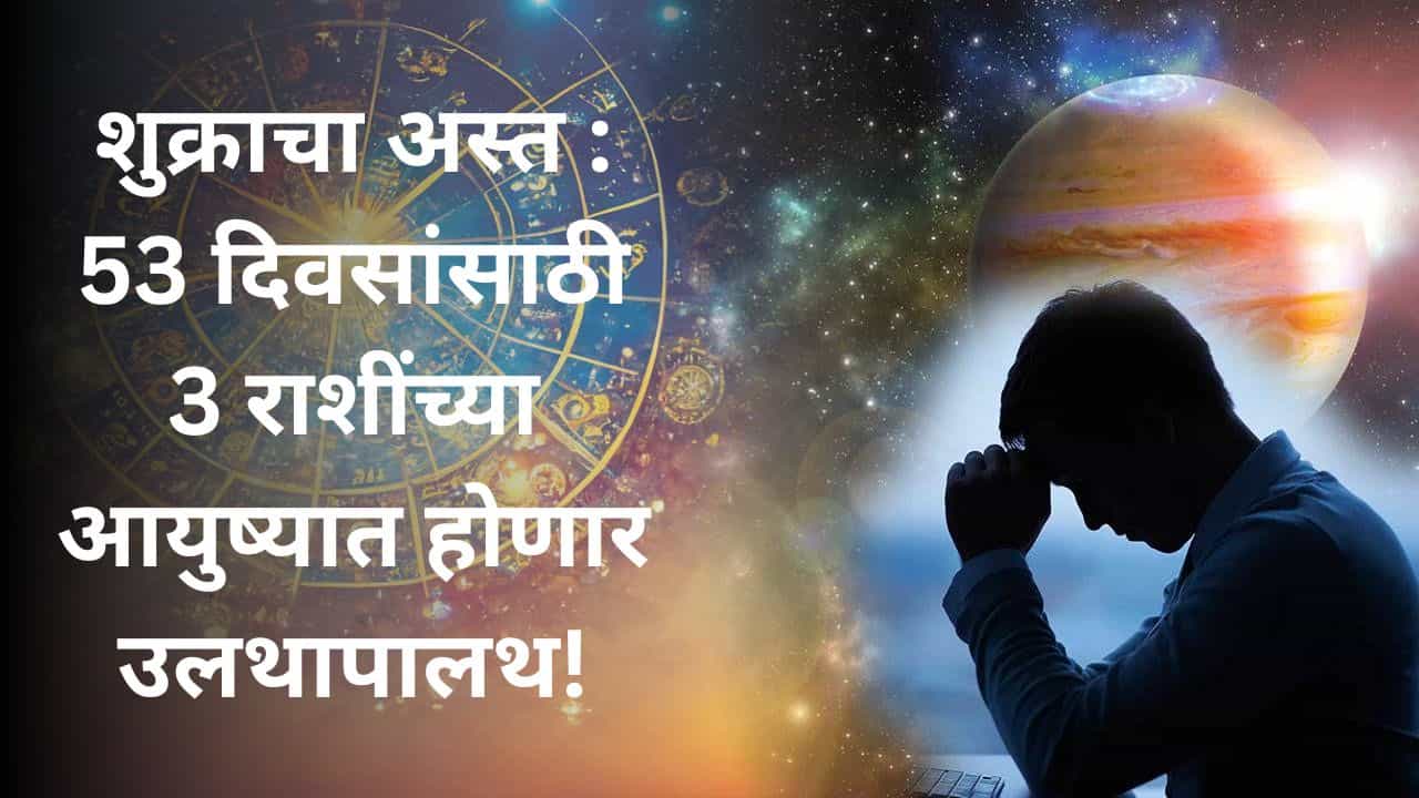 शुक्र तारा मावळल्यामुळे 11 डिसेंबर 2025 पासून पुढील 53 दिवस तूळ, वृश्चिक आणि मकर राशींना अनेक अडचणींचा सामना करावा लागेल. प्रेमसंबंध, आर्थिक स्थिती आणि घरगुती जीवनात गुंतागुंत वाढू शकते. मानसिक अशांतता आणि नातेसंबंधांमध्ये गैरसमज टाळण्यासाठी संयम आणि शांत संवाद महत्त्वाचा ठरेल. हा काळ आत्मचिंतन आणि सावधगिरीचा आहे.
