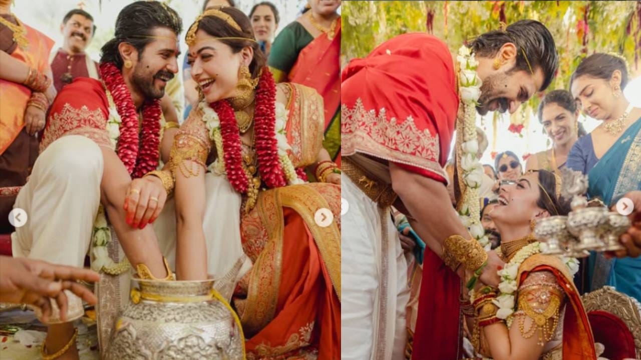 Rashmika and Vijay Wedding Photos: अभिनेत्री रश्मिका मंदाना आणि अभिनेता विजय देवरकोंडा यांनी सात वर्षे डेट केल्यानंतर आज लग्न केले आहे. त्यांच्या लग्नातील फोटो सध्या सोशल मीडियावर चर्चेत आहेत.