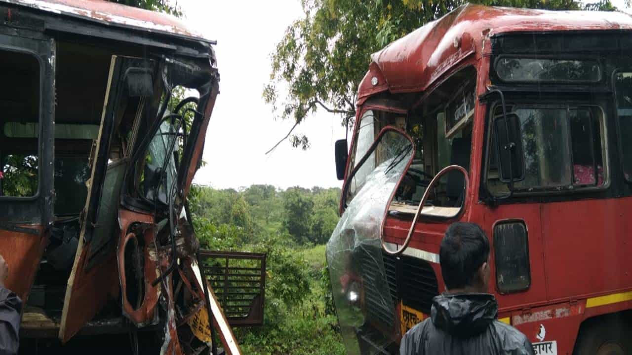 एसटी बसच्या अपघातात दोन्ही एसटीचा चक्काचूर झाला होता. या अपघातानंतर बसमधील प्रवाशांची एकच घाबरगु्ंडी उडाली होती. जीवितहानी जरी या अपघातामध्ये झाली नसली, तरी काही प्रवासी या अपघातामध्ये जखमी झालेत. त्यासोबत शालेय विद्यार्थ्यांनाही अपघातात मार बसलाय. पावसाखरी या गावातील एका वळणावर समोरुन येणाऱ्या एसटी बसचा अंदाज न आल्यामुळे दोन्ही चालकांना गाडी नियंत्रित करता आली नाही आणि एसटी बस समोरासमोर धडकल्या.
