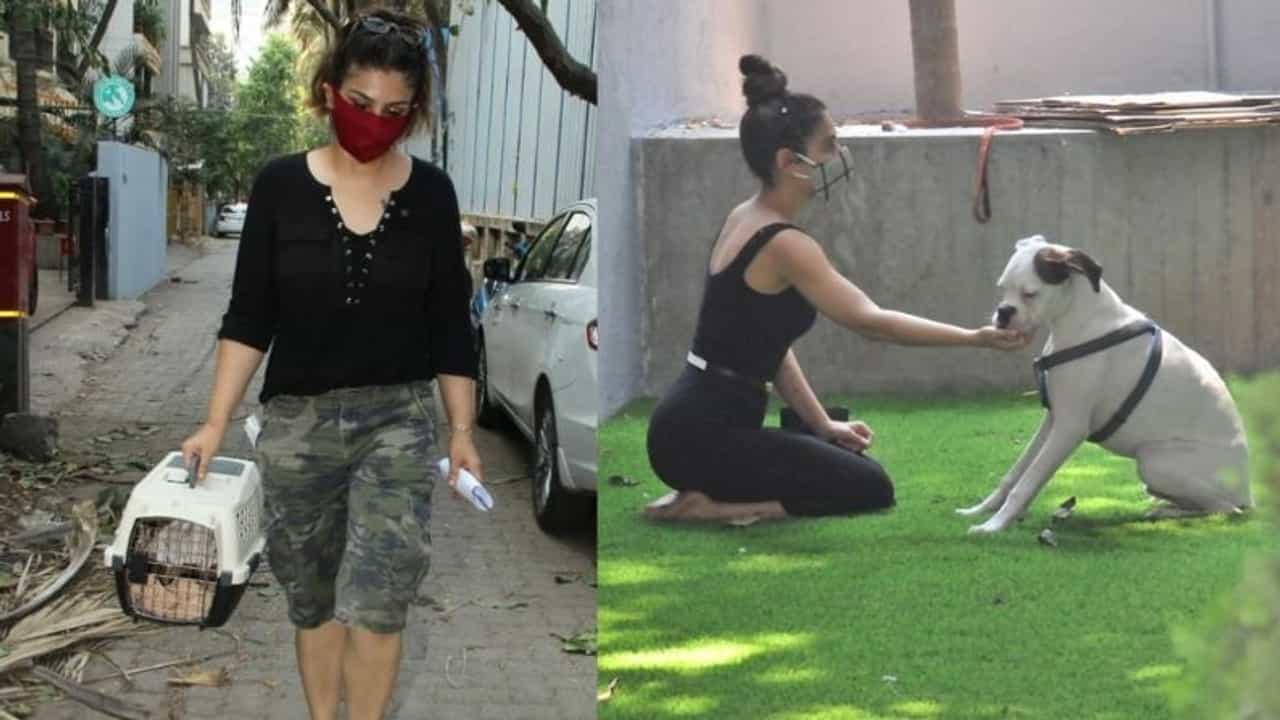 फातिमा सना शेख येथे आपल्या श्वानासोबत खेळताना दिसली.