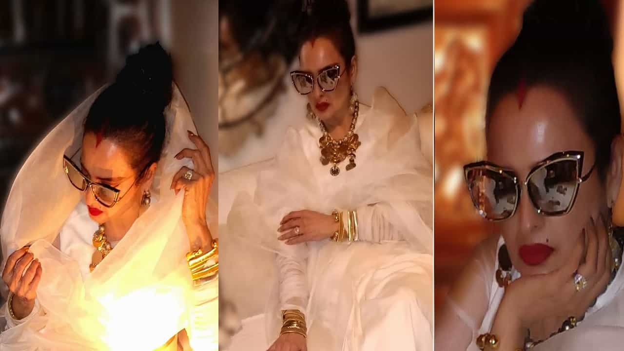पांढऱ्या साडीत रेखा यांचा खास लूक, 70 व्या वर्षी चाहत्यांना देतात फॅशन गोल्स