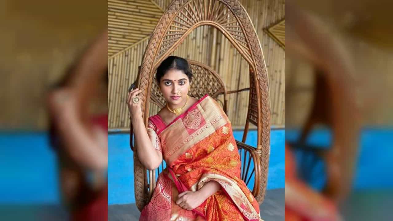 आता तिनं केशरी रंगाच्या साडीमध्ये मस्त फोटोशूट केलं आहे.