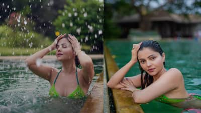रुबिनाने ग्रीन कलरचा बिकिनी सेट घातला आहे ज्यामध्ये ती खूपच हॉट दिसत आहे. याबरोबरच तिने न्यूड मेकअप केला असून सॉफ्ट पिंक लिपस्टिक लावल्याने तिचे सौंदर्य आणखीनच खूलून दिसत आहे.