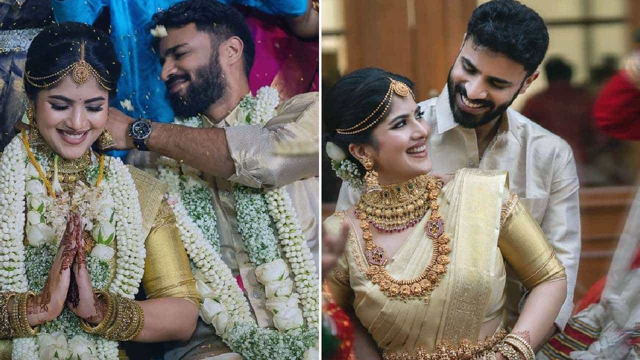 मेघा आणि आकाशने दाक्षिणात्य विवाहपद्धतीनुसार लग्न केलंय. या लग्नसोहळ्यात मोजके कुटुंबीय सहभागी झाले होते. मेघाने सोनेरी आणि आयव्हरी रंगाची कांजीवरम सिल्क साडी नेसली होती. टेंपल ज्वेलरीमुळे तिचं सौंदर्य आणखी खुललं होतं.