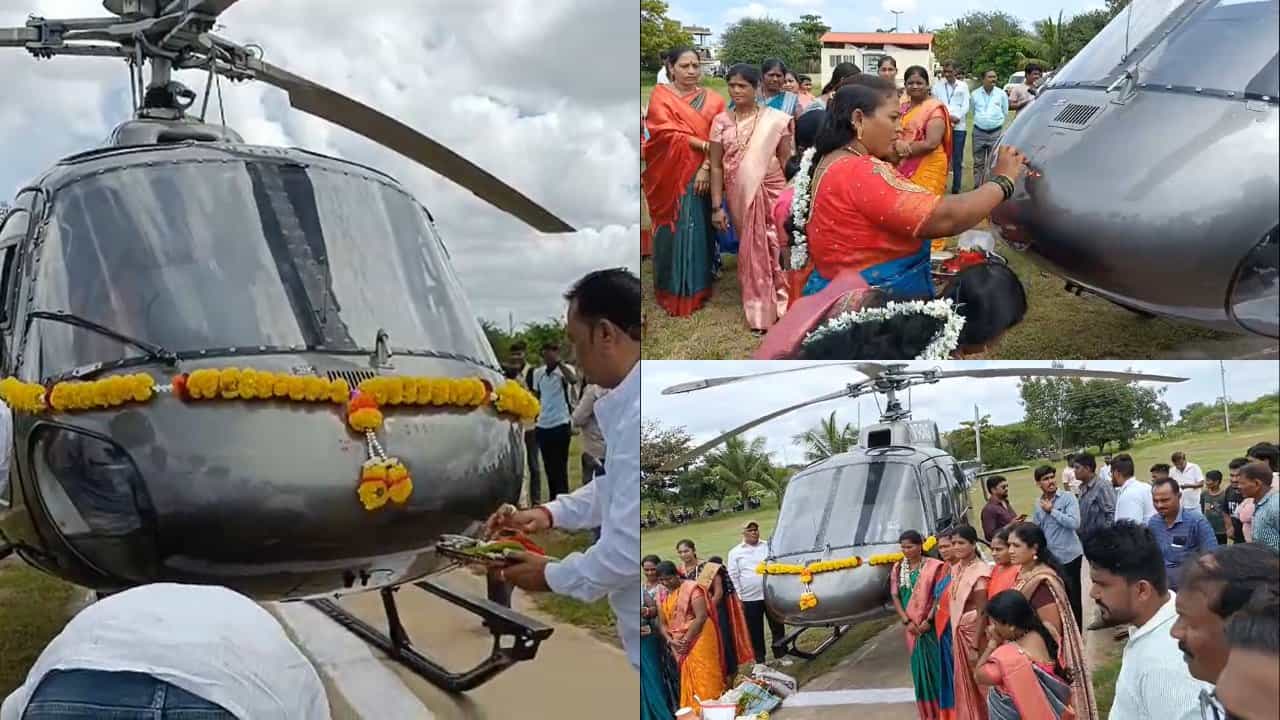 झुकझुक गाडी नाही, आटपाटीची लेक चक्क हेलिकॉप्टरने आली माहेरी, पाहा Photos