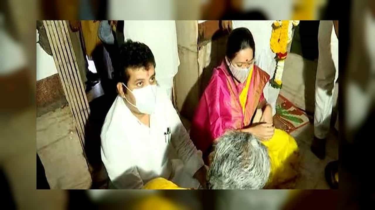संजय राठोड यांनी पत्नीसोबत पोहरादेवीचं दर्शन घेतलं .