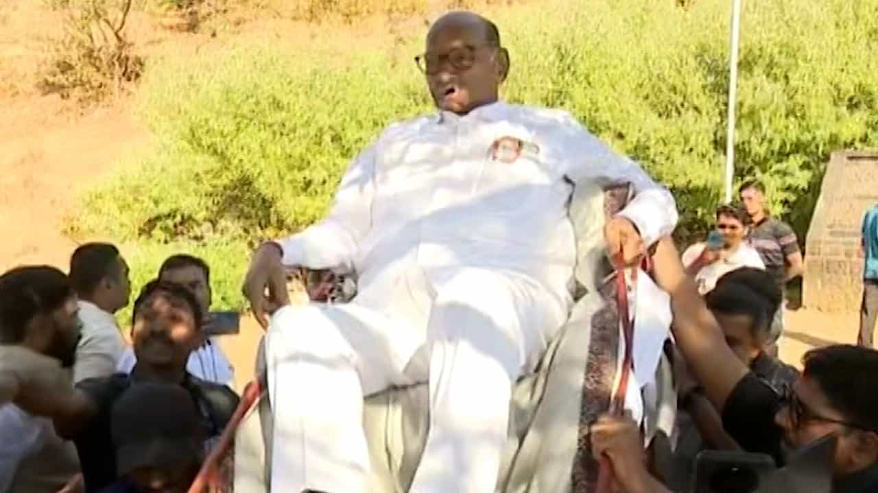रोपे वे ते कार्यक्रम स्थळ जाण्यासाठी बराच अंतर चालत जावे लागते. शरद पवार यांनी इतके चालणे शक्य नाही. त्यामुळे पालखीच्या साह्याने त्यांना कार्यक्रमस्थळी नेले गेले आहे. त्यावेळी त्यांच्या सुरक्षेचा ताफाही सोबत होता.