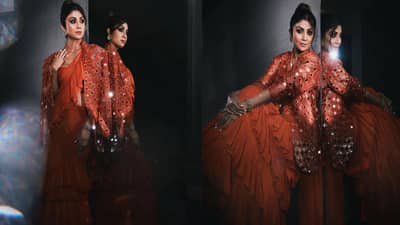 भगव्या रंगाच्या साडीत अभिनेत्री फार सुंदर दिसत आहे. एवढंच नाही तर, मिरर वर्क जॅकेट देखील अभिनेत्रीवर उठून दिसत आहे. सध्या सर्वत्र अभिनेत्रीचे फोटो व्हायरल होत आहेत.