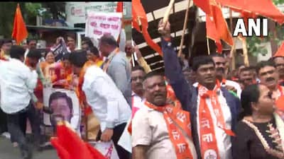 यावेळी आंदोलनात सहभागी झालेल्या शिवसैनिकांनी एकनाथ शिंदे आणि इतर बंडखोर आमदारांच्या विरोधात जोरदार घोषणाबाजी केली त्यांच्या प्रतीकात्मक पुतळ्याचे दहनही केले .