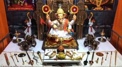 पुणे जिल्ह्यातील वेल्हा तालुक्यातील विंझर गावच्या अमित मधुकर सागर या तरुणाने घरी गणपती बसवला आहे. त्यासाठी त्याने शिवराज्याभिषेकचा देखावा बनवला आहे. हा देखावा तयार करण्यासाठी अमित गेल्या आठ महिन्यांपासून तयारी करत होता.