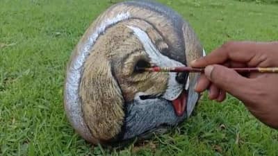 तर दगडावर साकारलेलं कुत्र्याचे चिञ अंगणात किंवा गार्डनमध्ये ठेवल्यासारखे भासत आहे. हे चित्र पाहताना खरोखरच कुत्रा बसला असल्याचा भास होतो.