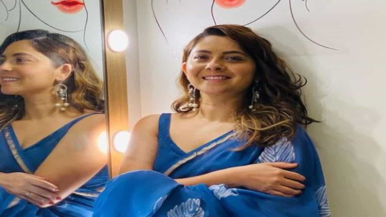 निळ्या रंगाच्या साडीत सोनाली कमालीची सुंदर दिसतेय.