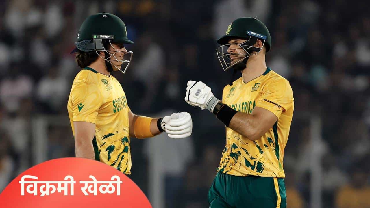 टी20 वर्ल्डकप स्पर्धेतील प्रत्येक सामन्यात काही नाही काही विक्रमाची नोंद होत आहे. न्यूझीलंडविरूद्धच्या सामन्यात दक्षिण अफ्रिकेचा कर्णधार एडन मार्करम यांनी विक्रमाची नोंद केली आहे. त्याच्या विक्रमी खेळीने दक्षिण अफ्रिकेचा विजय पक्का झाला. (Photo- Proteas Men Twitter)