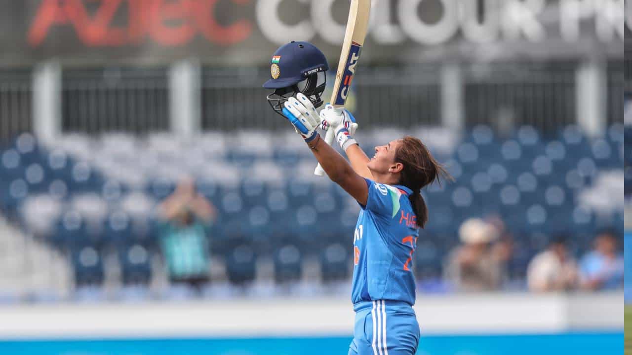 तिसऱ्या वनडे सामन्यात भारताची कर्णधार हरमनप्रीत कौर हीची बॅट चांगलीच तळपली. तिने 84 चेंडूत 14 चौकारांच्या मदतीने 121.43 च्या स्ट्राईक रेटने 102 धावा केल्या. तसेच एका विक्रमाला गवसणी घातली आहे. तिचं हे वनडे क्रिकेटमधील सातवं शतक आहे. वनडे क्रिकेटमध्ये तिने इंग्लंडविरुद्ध हे तिसरं शतक ठोकलं आहे. (Photo- BCCI)