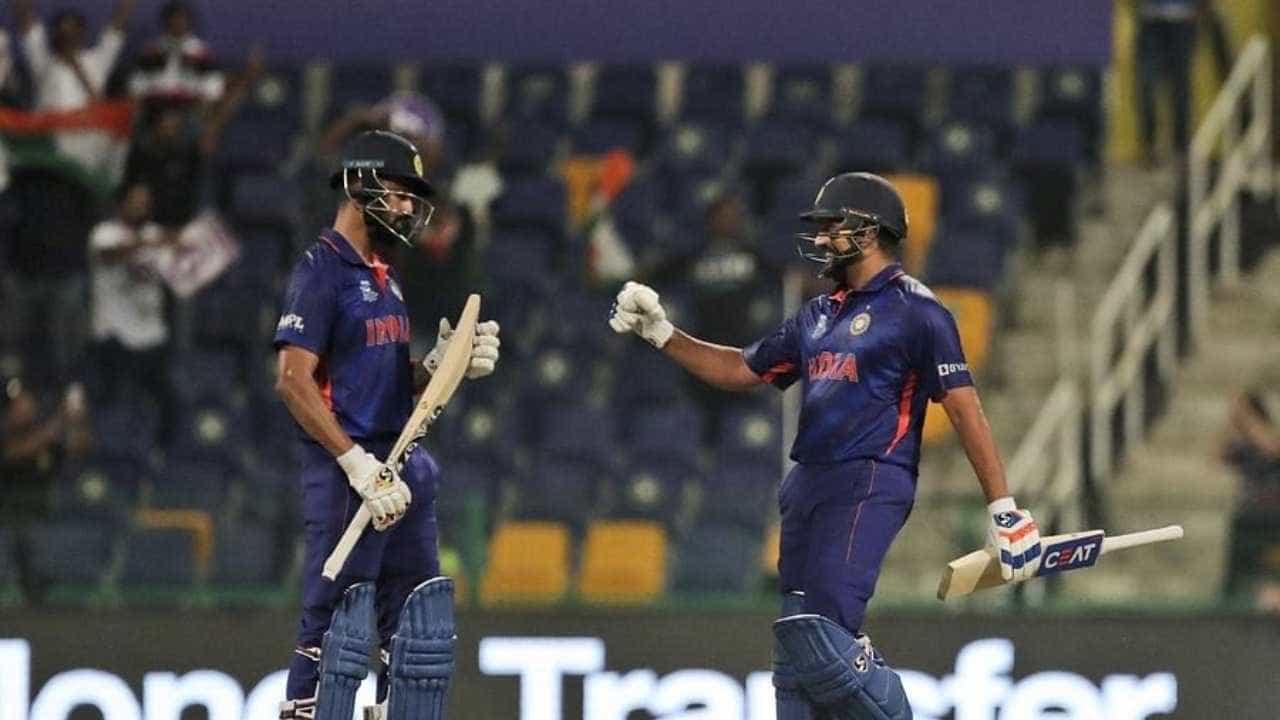 ICC T20 विश्वचषकात भारतीय क्रिकेट संघाची सुरुवात खराब झाली. भारताला पहिल्याच सामन्यात पाकिस्तानकडून पराभव स्वीकारावा लागला होता. यानंतर न्यूझीलंडने भारताचा पराभव केला. मात्र, दोन पराभवानंतर भारताने आता विजयाचं खातं उघडलं आहे. 2007 च्या विश्वविजेत्याने भारतीय संघाने बुधवारी रात्री झालेल्या सामन्यात अफगाणिस्तानचा 66 धावांनी पराभव करून ICC T20 विश्वचषक-2021 मध्ये पहिल्या विजयाची नोंद केली आहे. भारताच्या रोहित शर्मा आणि केएल राहुल या सलामीच्या जोडीने विजयाचा पाया रचला. रोहितने 74 तर राहुलने 69 धावा केल्या. दोघांनी जबरदस्त भागीदारी करुन 2007 मध्ये बनवलेला मोठा विक्रम मोडला.