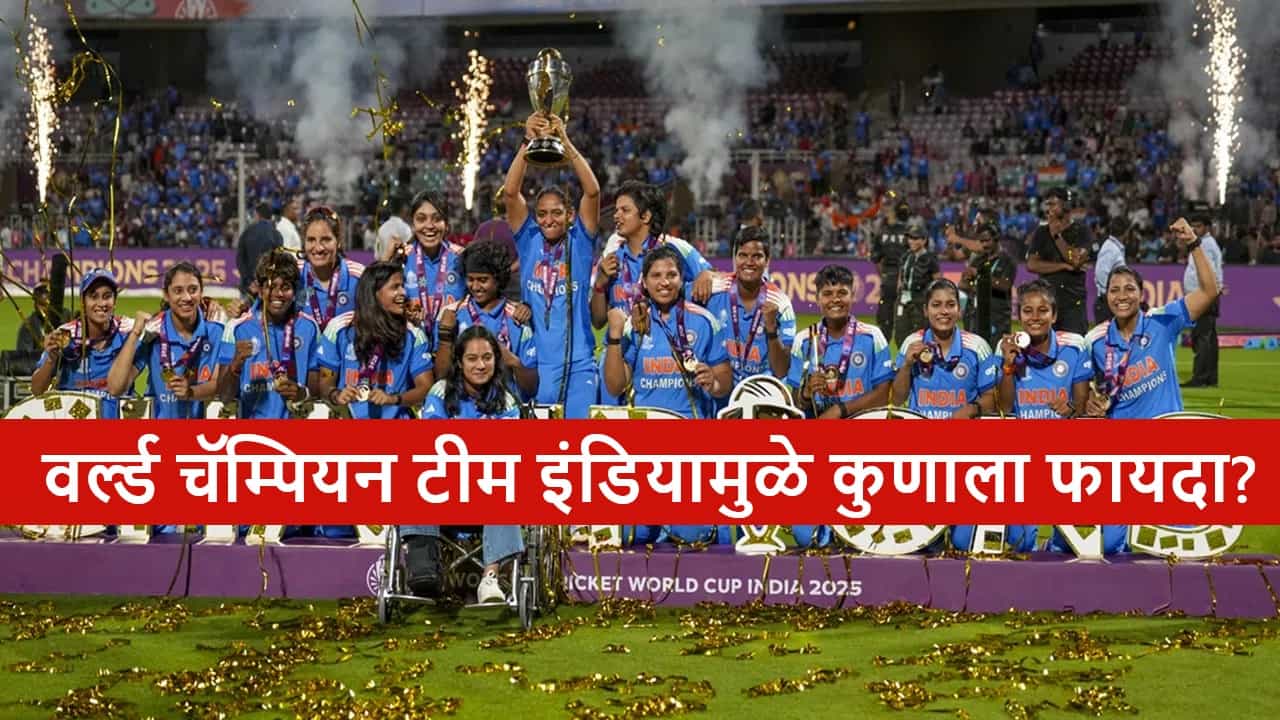 भारतीय महिला संघाने वनडे वर्ल्ड कप जिंकत इतिहास घडवला. भारताने तिसऱ्या प्रयत्नात वर्ल्ड कप ट्रॉफीवर नाव कोरलं. भारतीय संघाने बॅटिंग, बॉलिंग आणि फिल्डिंग या तिन्ही आघाड्यांवर चमकदार कामगिरी करत पहिलावहिला वर्ल्ड कप मिळवला. टीम इंडियाने वर्ल्ड कप जिंकल्याने त्याचा अनेक बाबींवर सकारात्मक परिणाम झाला. या वनडे वर्ल्ड कप स्पर्धेला डीजीटल प्लॅटफॉर्मवर 45 कोटी व्हीव्यूज मिळाले. (Photo Credit : PTI)